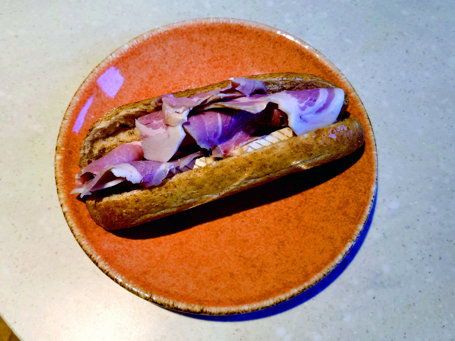 次は『自家製ハムサンド』です。しっとりとしたハムは厚切りながらも歯切れがよく、適度な脂肪のバランスも良い感じです。ハムと一緒にサンドされた『ブリ―チーズ』は白カビ系のチーズで、バターのようにクリーミーな質感と淡い香り、後にコクが残ります。