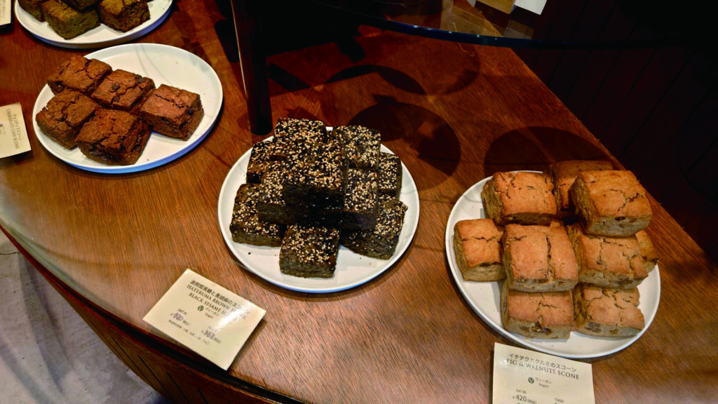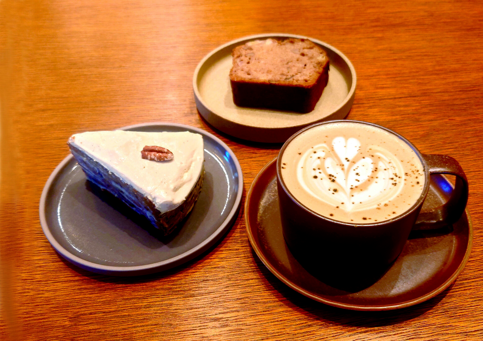 コーヒーの他に『ベーグルサンド』や『アサイーボウル』など軽食のメニューもありましたが、ランチの後でしたので、『キャロットケーキ(税込700円)』と『バナナケーキ(税込420円)』の2点にしました。ケーキはいずれもヴィーガン仕様です。
